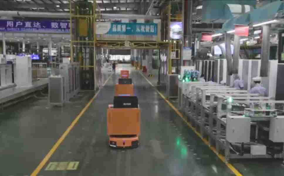为车载冰箱物流配送打造的智能解决方案,,包含产中物流通过潜伏举升AMR搬运至线边,,产后成品物流智能仓储,,流程包含产中物流智能齐套入库,,线边安灯叫料AMR智能配送至线边,,,成品入库、、、、出库,,,,通过无人堆高车机器人,,智能仓储管理替代人工作业管理,,,,实现更高存储、、、、更高效率、、、、更具柔性化的解决方案。。。